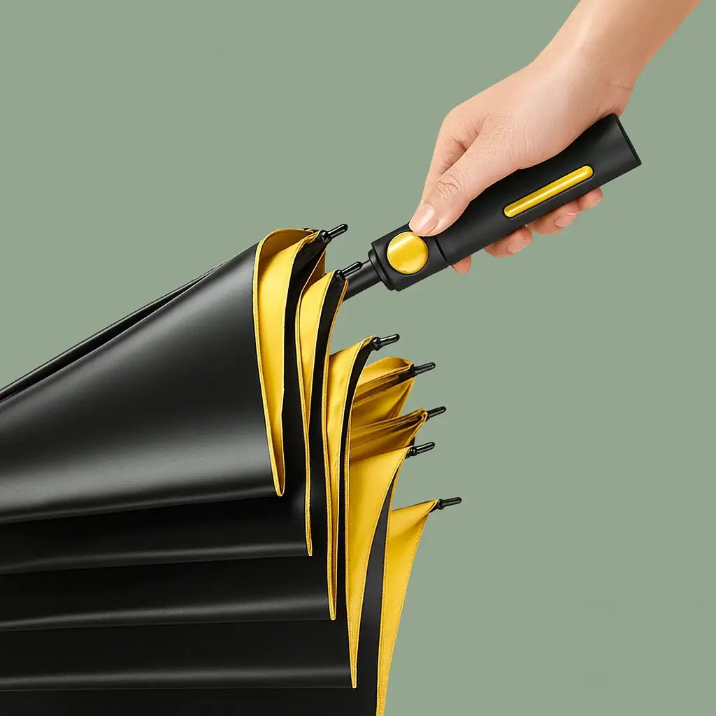 Este paraguas de 27 pulgadas y doble capa combina una cúpula resistente y repelente al agua con revestimiento interior negro que reduce los rayos UV y apertura semiautomática, dándote cobertura instantánea y fiable en trayectos, recados, colegio, eventos y viajes.